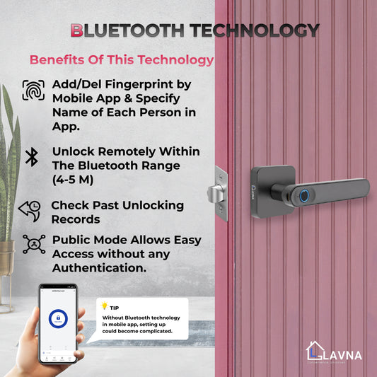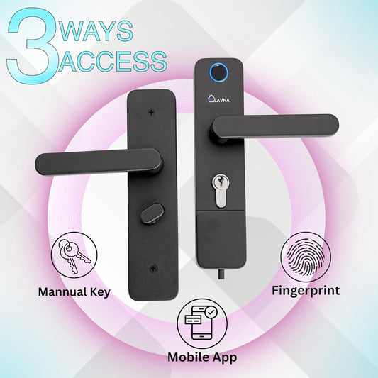 • LAVNA LA15 Fingerprint Smart Door Lock Handle with Fingerprint, and Manual Key Access for Wooden Doors
