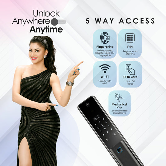 LAVNA Digital LA8 Smart Door Lock | Multi Access Lock | Fingerprint, Mobile App, OTP, PIN, RFID Card, Wifi Unlock and Manual Key Access for Wooden Doors